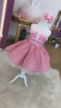 This dress is the perfect dress for a spring event. This can be customized to any color to fit the event. Stunning knee length piece with layers of tulle. Featuring 3D flowers appliqued hand stitched.