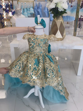 This beautiful dress is made with extremely soft tulle with satin and, jeweled lace. The outfit is lined from top to bottom with cotton perfect for baby and children sensitive skin. Each dress comes with a matching headband